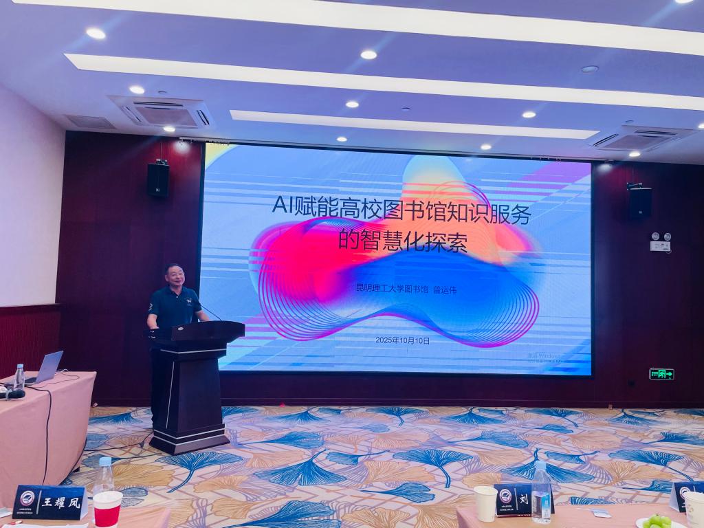 云南高校图指委副主任委员单位负责人、昆明理工大学图书馆普运伟馆长,作了“AI赋能高校图书馆知识服务的智慧化探索”的主题汇报,汇报根据本馆团队研究经验提出制定规则确保人工智能体技术在图书馆领域得到健康、有序和负责任的发展,重塑智慧图书馆的核心竞争力。