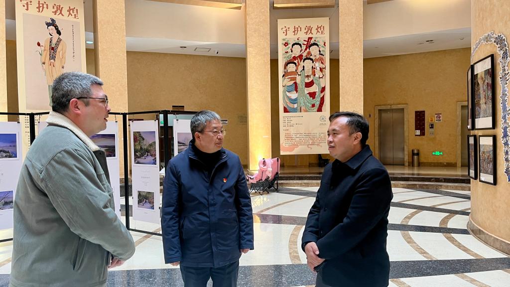 2025年12月26日上午,校党委副书记蔡金红陪同云南艺术学院党委副书记蒋锋来图书馆参观一楼艺术空间。