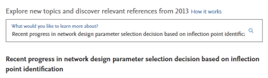 比如我们想了解“基于拐点识别的网络设计参数选择决策的最新进展”,就可以直接在Scopus AI对话框直接用英文提问(也可用中文,可以参考do deeper中推荐的英文近似结果),打破原有检索式关键词的所搜方式